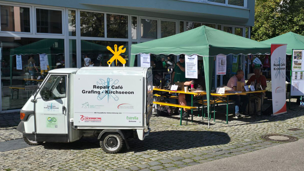 Bei super Wetter waren wir am 21.09.2025 auf dem Energie- und Umwelttag in Kirchseeon mit einem Stand vertreten. Sowohl unsere RepairCafe-Aktivitäten aber auch unser Verein wurde Interessierten erläutert und fand hohe Zustimmung.