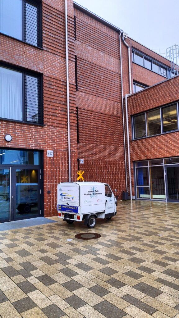 Dieses Mal waren wir am Humboldt-Gymnasium in Vaterstetten, wo die Veranstaltung zum zweiten Mal stattgefunden hat. Natürlich mit unserer APE als rollende Werkstatt, die unser Material zu den verschiedenen Orten transportiert. Und so sieht die Bilanz aus: