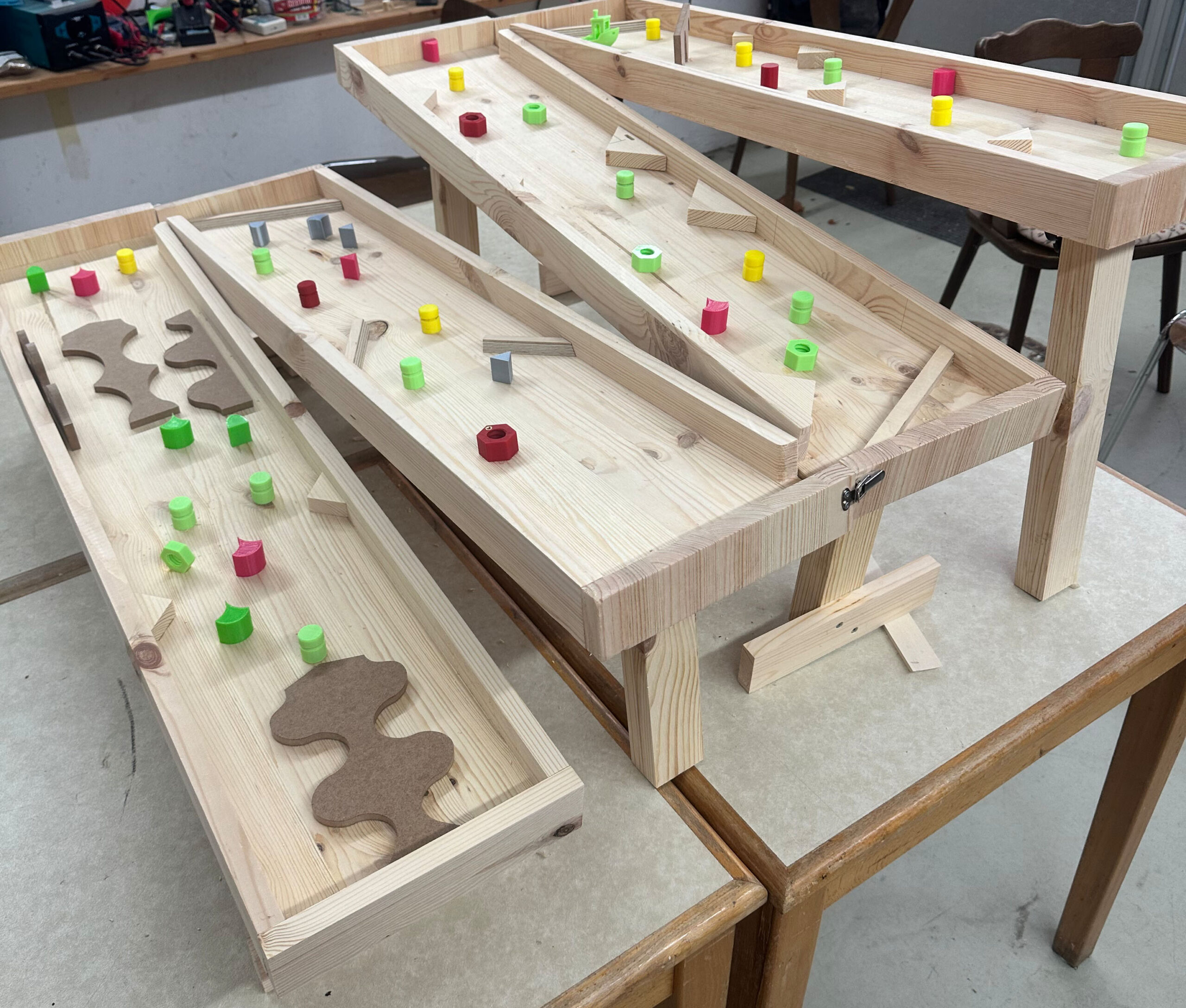 Wir werden noch einen weiteren Workshop mit den Teilnehmern machen um letzten Schliff an die Murmelbahn zu bringen … und freuen uns schon auf die glänzenden Augen der Kinder im Kindergarten „Gartenturm“.